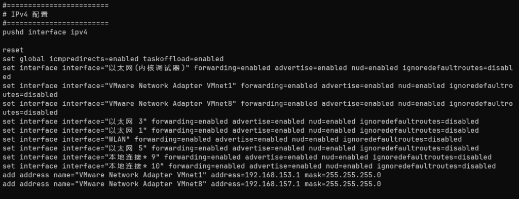 例如,执行 netsh dump interface 后,存在包括 “以太网” 在内的许多无效配置。